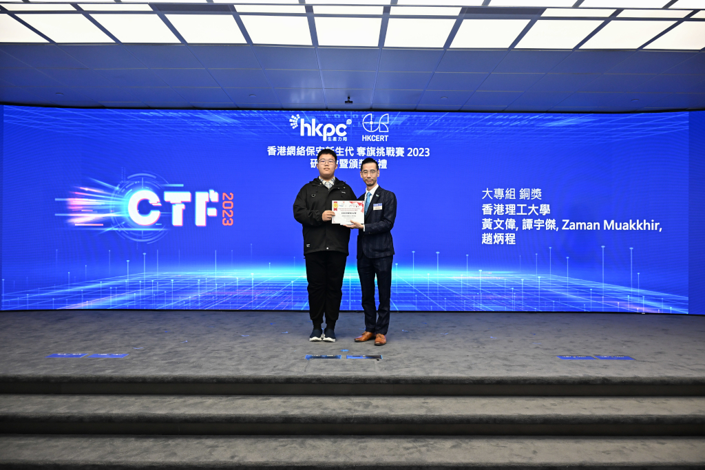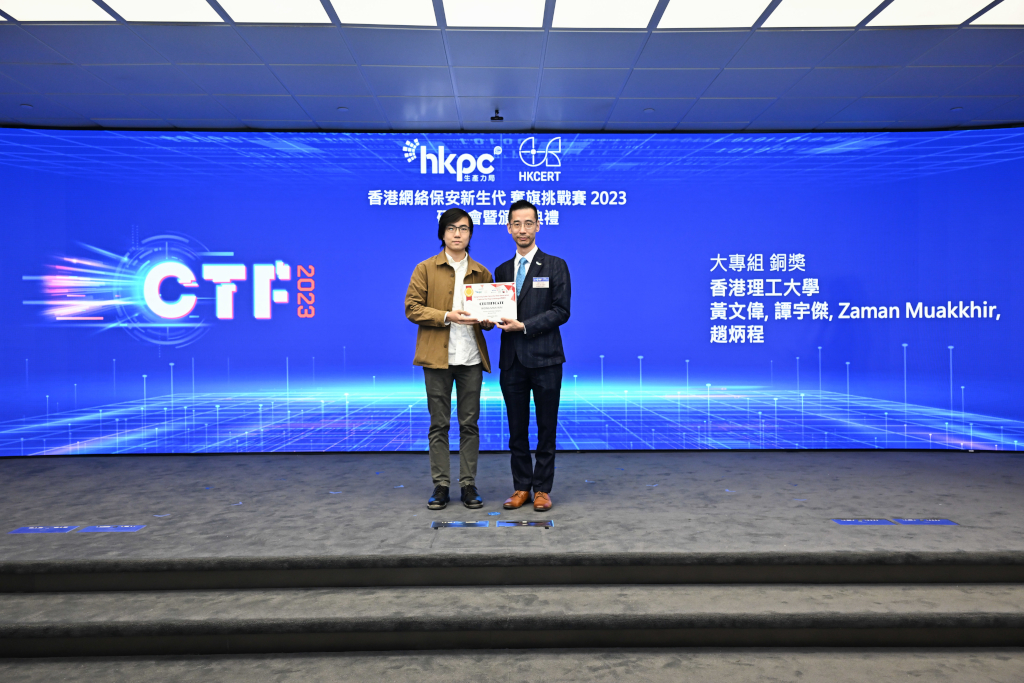 Congratulations to our CTF Team on obtaining BOTH Champion AND 2nd-Runner Up in the Tertiary Institution Category in “Hong Kong Cyber Security New Generation Capture the Flag (CTF) Challenge 2023” organized by HKPC and HKCERT.